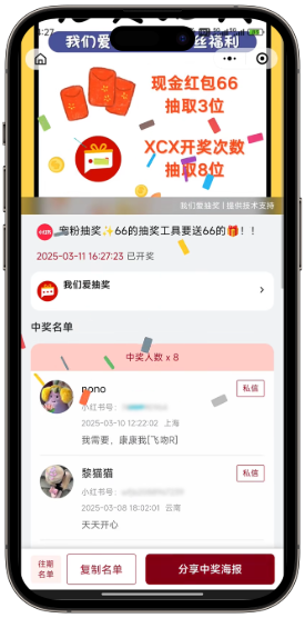 如果博主有分享口令,建议在小程序中搜索口令并订阅开奖通知;开奖后,博主可能会在评论区置顶或发帖公示中奖名单和海报。